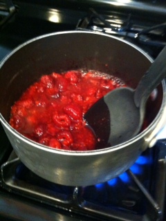 3 cups of frozen raspberries.