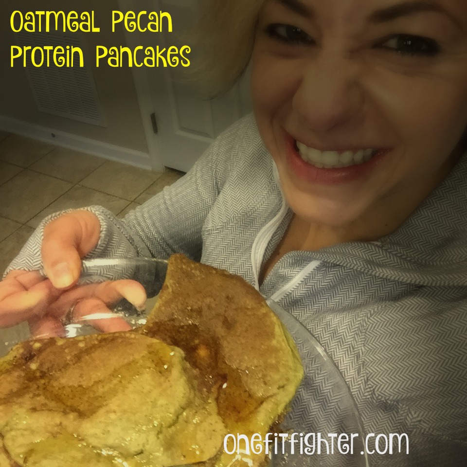 Mike and I are in our second week of the program Hammer and Chisel! Our muscles are screaming, but our results are really starting to show, and there is nothing better to fuel the muscles than these Oatmeal Pecan Protein Pancakes!