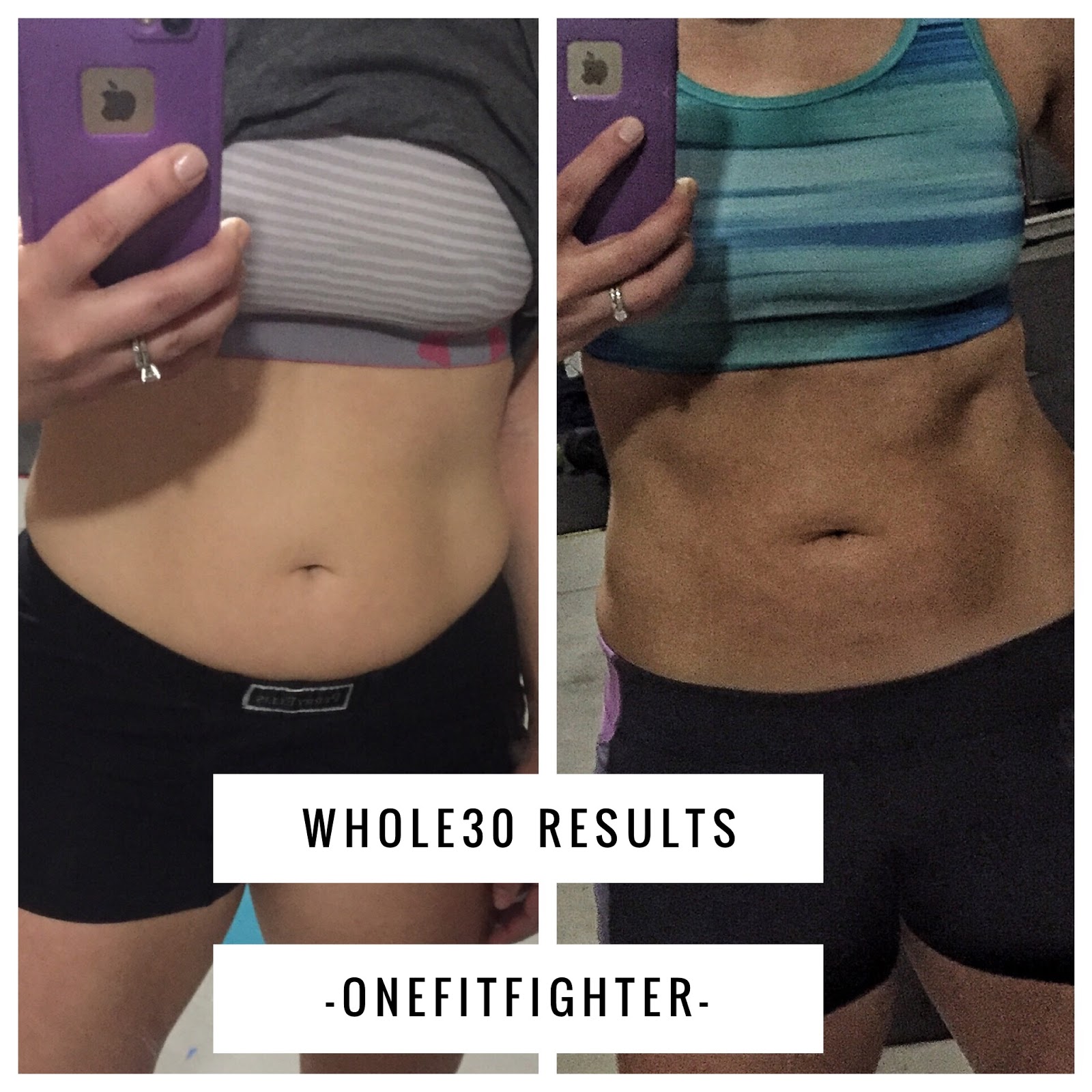 The picture is a side by side. To be honest, the image on the left is more of a reflection of bloat- a reflection of the way my food choices negatively impact my body, my confidence, and my overall health. The image on the right is that of me- a real woman, with real curves, and real results 30 days without cheats, processed sugars, and loaded carbs.
